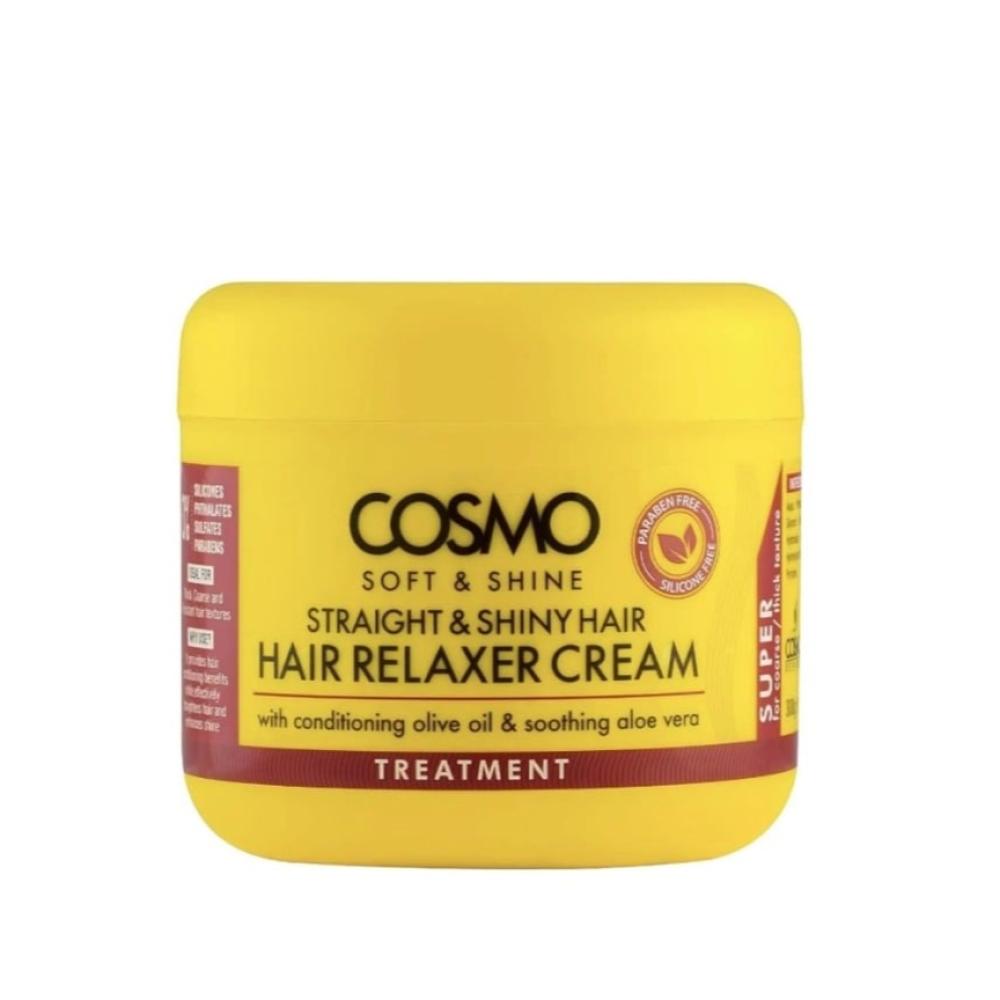 كريم فرد الشعر كوزمو سوفت اند شاين هو منتج مصمم لتنعيم وتسوية الشعر، مما يمنحه مظهراً لامعاً وسهل التصفيف. يحتوي هذا الكريم على مزيج من زيت الزيتون المغذي والصبار المرطب، مما يساعد على حماية الشعر وتغذيته أثناء عملية الفرد.
